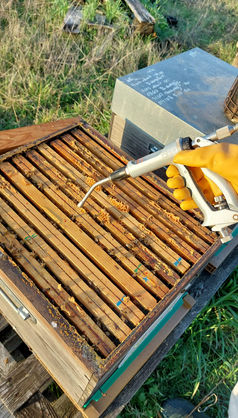Décembre est là, les premières gelées sont arrivées. Les abeilles se sont resserrées en grappe autour de la reine pour garder une température proche de 34 degrés au cœur de la grappe. Lorsqu'il y a des températures plus douces et un rayon de soleil elles sortent pour faire leur besoin à l'extérieur de la ruche puis reviennent consommer du miel pour réchauffer la colonie. La reine a stoppé sa ponte (avec les jours qui raccourcissent), c'est le bon moment pour vos apiculteurs d'effectuer un traitement anti varroa, ce parasite de l'abeille qui se reproduit dans les cellules contenant du couvain (larves/nymphes). En l'absence de couvain il se retrouve vulnérable, sur le dos des abeilles, nous appliquons donc un mélange de sirop de sucre bio et d'acide oxalique (acide de l'oseille et de la rhubarbe) sur les abeilles, qui vont ensuite se lécher et ainsi s'épouiller naturellement. Dès le 21 décembre, solstice d'hiver, les journées vont à nouveau se rallonger, les abeilles vont le ressentir, les premiers pollen vont apparaître dans les saules et les noisetiers et la reine recommencera à pondre.